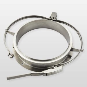 The Ezi-Dock™ FIBC Dust Free Transfer System has a 2 piece plastic disposable docking ring that is fitted to the filling/discharging spout of the FIBC. For ease of use, this is normally pre-fitted by the FIBC/Big Bag manufacturers. The system is available in either 14inch/350mm or 16inch/400mm diameter. The docking ring connects to a Stainless Steel self centering spigot and a dust tight seal is achieved within seconds.